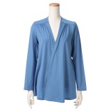 プールトレファムウールシルクラウンドネック五分袖プルオーバー