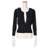 前開き部分に繊細な美しいレースを使用した、長袖カーディガンです。■身頃:ベースには12ゲージで編み上げたニットを使用。