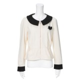 カットソー素材を使用した、ブローチ付きの一重仕立てのジップアップジャケットのご紹介です。■身頃:身生地には着やすいカットソー素材を採用。