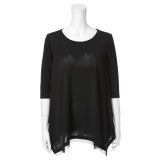 アンリック オー ブルー立体フラワーモティーフ五分袖プルオーバー