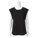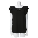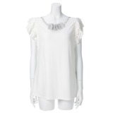 シルバーミントシュガーネックレス風飾り付フリルキャップスリーブプルオーバー