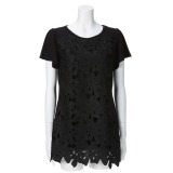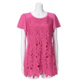 前身頃を大きめのフラワー柄のレースで切り替えた半袖チュニックプルオーバーです。■身頃:ベースにカットソー素材を使用し、前身頃にフラワーレースを重ねたデザイン。