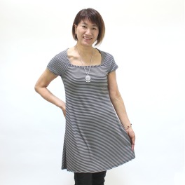 前身頃にスリットのデザインをほどこし、そこに別布を挟み込んだ、Aラインシルエットのキャップスリーブブラウスです。