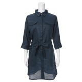 ゼラールスポーツフレンチリネン100%共布ベルト付八分袖シャツワンピース