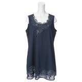 表地に刺しゅうレース生地を使用したノースリーブワンピースです。■身頃:表地にはトレンド素材でもある涼しげなコットン刺しゅうレースを使用。