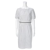 ウインドペンチェック柄の半袖ワンピースです。■身頃:シンプルなデザインですが、上身頃とスカート部分にほどよいボリューム感を持たせ、やや高めのウエスト位置で切り替えを入れてメリハリを出しました。