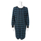 長袖ニットワンピースです。■身頃:ウインドペン柄を、ジャガード組織のニットで仕上げました。ジャガード組織のニットを使用し、適度な肉感を持って仕上げているため、身体のラインを響かせにくいつくり。