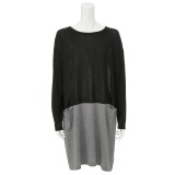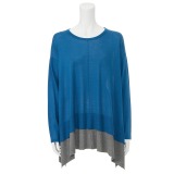 薄手の素材を使用した配色切り替えのニットプルオーバーです。身体のラインをきれいに見せてくれるAライン風のシルエットに仕上げました。