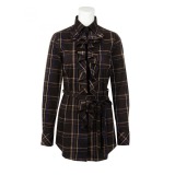 ナラカミーチェチェック柄長袖フリルチュニックシャツ