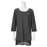 オルテンジアストレッチポンチレースアクセント七分袖チュニックプルオーバー