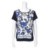 ブルーコレクションエンブロイダリーレースアクセントキャップスリーブブラウス