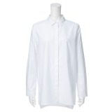 襟と袖にエンブロイダリーレースを使用したキャップスリーブブラウスです。ポロシャツスタイルをエレガントにアレンジし、当ブランドらしいデザインに仕上げました。