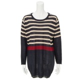 配色ボーダーチュニックプルオーバー