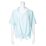 シルバーミントシュガースリットデザインキャップスリーブブラウス