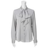 リナ プリべシルクストレッチ共布ボウタイ付長袖シャツ