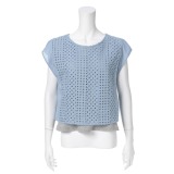 アンリック オー ブルーフレンチリネン100%メッシュ編み五分袖プルオーバー