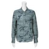 フレアフレンチリネン100%カモフラージュプリント長袖シャツ