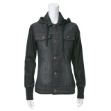 身頃に防風加工をほどこした裏毛デニムを使用し、袖をニットデニムで切り替えたフード付きのジャケットです。