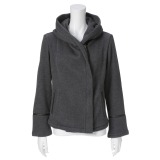 綿混素材を使用したリブ編みのフード付きジャケットです。■身頃:首元を囲む大きめのフードが、まるで襟のように見え、デザインのアクセントになっています。