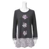 シカレロローズプリント長袖チュニックプルオーバー