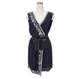 フレンチコネクションフラワー刺しゅうラップデザインノースリーブワンピース