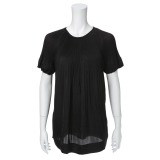 絶妙な光択感のヴィンテージ風のサテン素材で、大人プリーツを表現した半袖ブラウスです。■身頃:身頃上部からあしらった細かいプリーツが印象的な仕上がり。