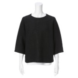 表面感と適度なハリが魅力の圧縮ジャージー素材を使い、シルエットと色合いでトレンド感を表現した、ドルマンスリーブの七分袖プルオーバーです。