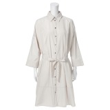 着心地の良さとデザイン性を兼ね備えた八分袖のシャツコートドレスです。■身頃:上品な光沢とハリ感が特徴のポリエステルタフタを使用。