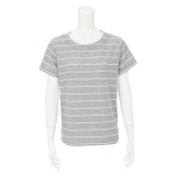 袖口部分をボーダー柄で切り替えた、長袖プルオーバーです。コットン素材をベースに使用した肌触りの良いカットソーで、ややシェイプされたウエストシルエットのベーシックタイプです。