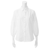 ボリュームのあるスリーブがかわいいブラウスです。袖口がゴム仕様になっているので袖丈の調節が可能で、短くすればふんわりボリュームが出て、よりフェミニンな雰囲気になります。