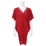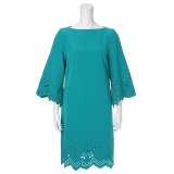 ルララサテンプリーツ切替五分袖ワンピース
