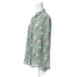 華やかなハワイアン風のフラワー柄がポイントになった長袖ブラウスです。■身頃:素材にはコットンを100%使用しています。