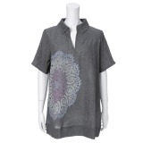前身頃にプリントをほどこした、さらっとした素材感が爽やかな半袖ブラウスです。■身頃:綿混素材を使用し、シワ感のある表情が涼しげな仕上がり。