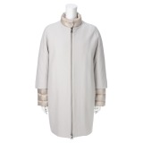 イタリア製の上品なノーカラーコートです。■一見ノーカラーでコンパクトさがうかがえるデザインですが、しっかり着込んでも着用できるくらいの、ゆとりある仕立てとなっています。