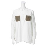 ジェフリーコットンデニムハリスツイードアクセント長袖チュニックシャツ