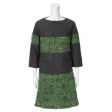 キリ エ キリヘリンボーン&ツイードコンビネーションデザイン八分袖ワンピース