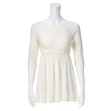 ミラノリブで仕上げた、クラシックな印象の五分袖ワンピースです。■身頃:ミラノリブのしっかりした風合いを活かしたAラインシルエットがポイント。