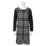 長袖ニットワンピースです。■身頃:ウインドペン柄を、ジャガード組織のニットで仕上げました。ジャガード組織のニットを使用し、適度な肉感を持って仕上げているため、身体のラインを響かせにくいつくり。