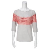 ミューリエメッシュ切替五分袖チュニックプルオーバー