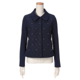 表地にキルティングとギャバジン生地を組み合わせて使用した、ステンカラーのジャケットです。キルティング部分には、パール調ビーズをちりばめました。