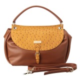 異素材を組み合わせて使用した、2ウェイショルダーバッグです。■本体:メイン素材はスムースタイプの合成皮革、マグネット付きかぶせ部分はオーストリッチ調の合成皮革を切り替えて使用。