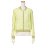 アンリック オー ブルー麻混オパール加工ドット柄ブルゾン