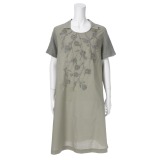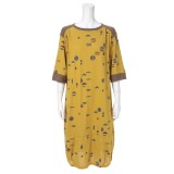 コットンを100%使用し、当ブランドオリジナルの柄をほどこした五分袖ワンピースです。ゆったりとしたシルエットで、さまざまな体形の方に着用いただけます。