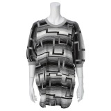 分量感をたっぷり取った、グラフィカルデザインの五分袖プルオーバーです。■身頃:ゆったりとした着心地の五分袖プルオーバーです。
