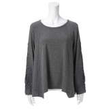 レースを袖部分にアクセントとしてあしらったAラインシルエットの長袖プルオーバーです。■身頃:裏毛素材のカットソーは柔らかく、ふんわりとした肌触りが魅力。