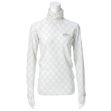 “クラボウ(株)”の“HOTLOCK”という糸を使った素材を使用し、襟と袖口のシフォンがアクセントになったハイネックの長袖プルオーバーです。