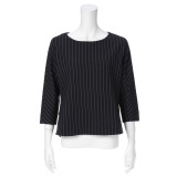 ストレッチ性のある素材を使用し、ストライプ柄をほどこした七分袖のプルオーバーです。■身頃:落ち感のあるしっかりとした素材を用いています。