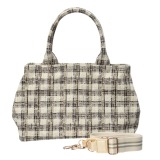チェック柄のモナリザプリントをほどこした、2ウェイ仕様のバッグです。■本体:“小松精練(株)”のモナリザプリントをデザインすることで、リアルなツイード柄が実現。