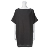 表地にウール混の生地を使用した、ゆったりとしたビッグシルエットがかわいらしい五分袖のチュニックワンピースです。■身頃:ドルマンスリーブの肩のラインに、直線的なサックシルエットが特徴。オフボディーのストレートなシルエットで、ボディーラインをカバーしてくれます。全体的にゆとりがあるので身体を締め付けず、着心地の良さもうれしいポイント。上半身にボリュームがあるデザインのため、丈はやや短くし、軽やかに仕上げました。■襟:襟はボートネックで華奢な印象に仕上げました。■袖:袖口のカフスがデザインのポイント。…
