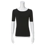 リナ プリべラウンドネック五分袖ニットプルオーバー